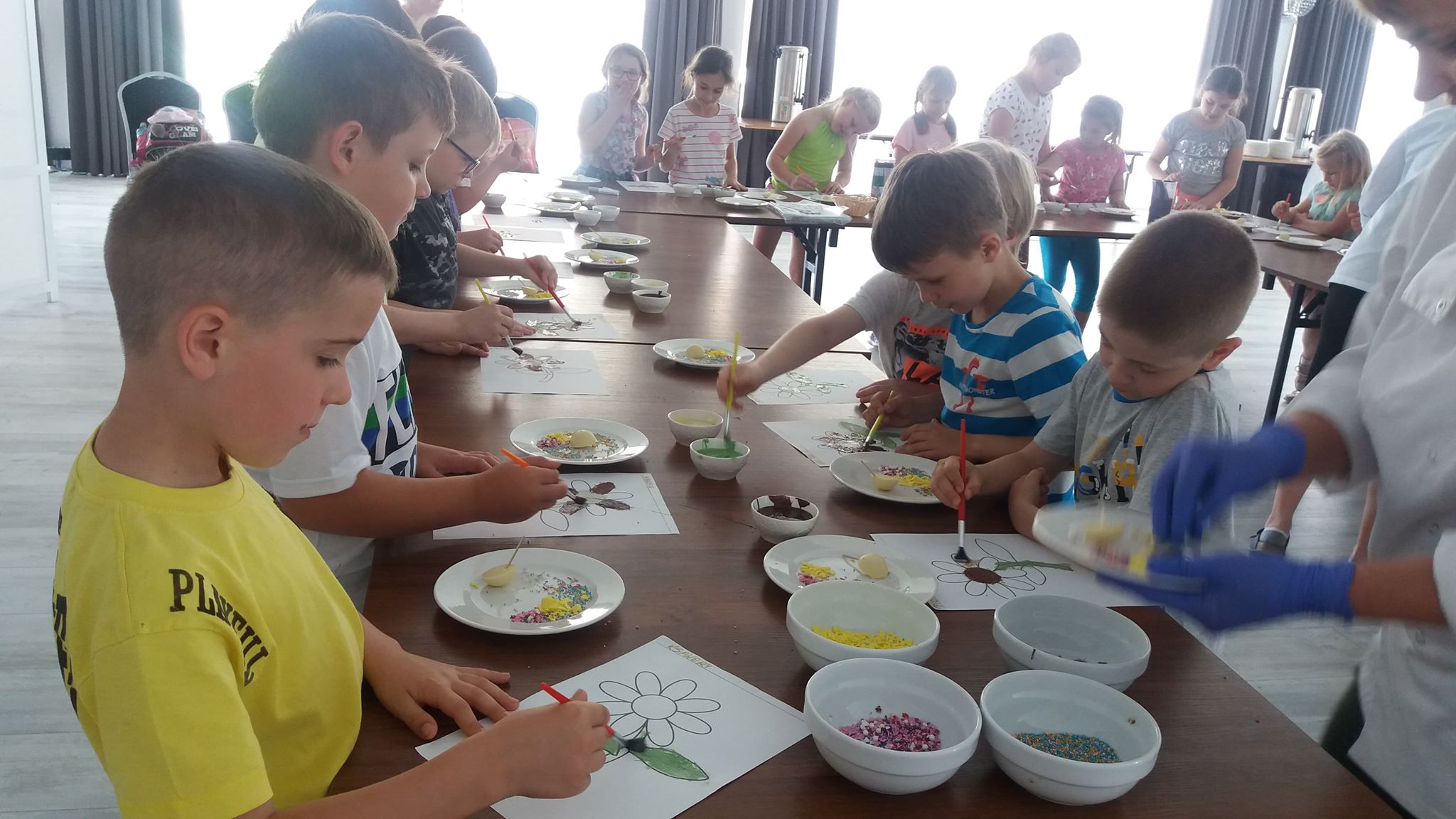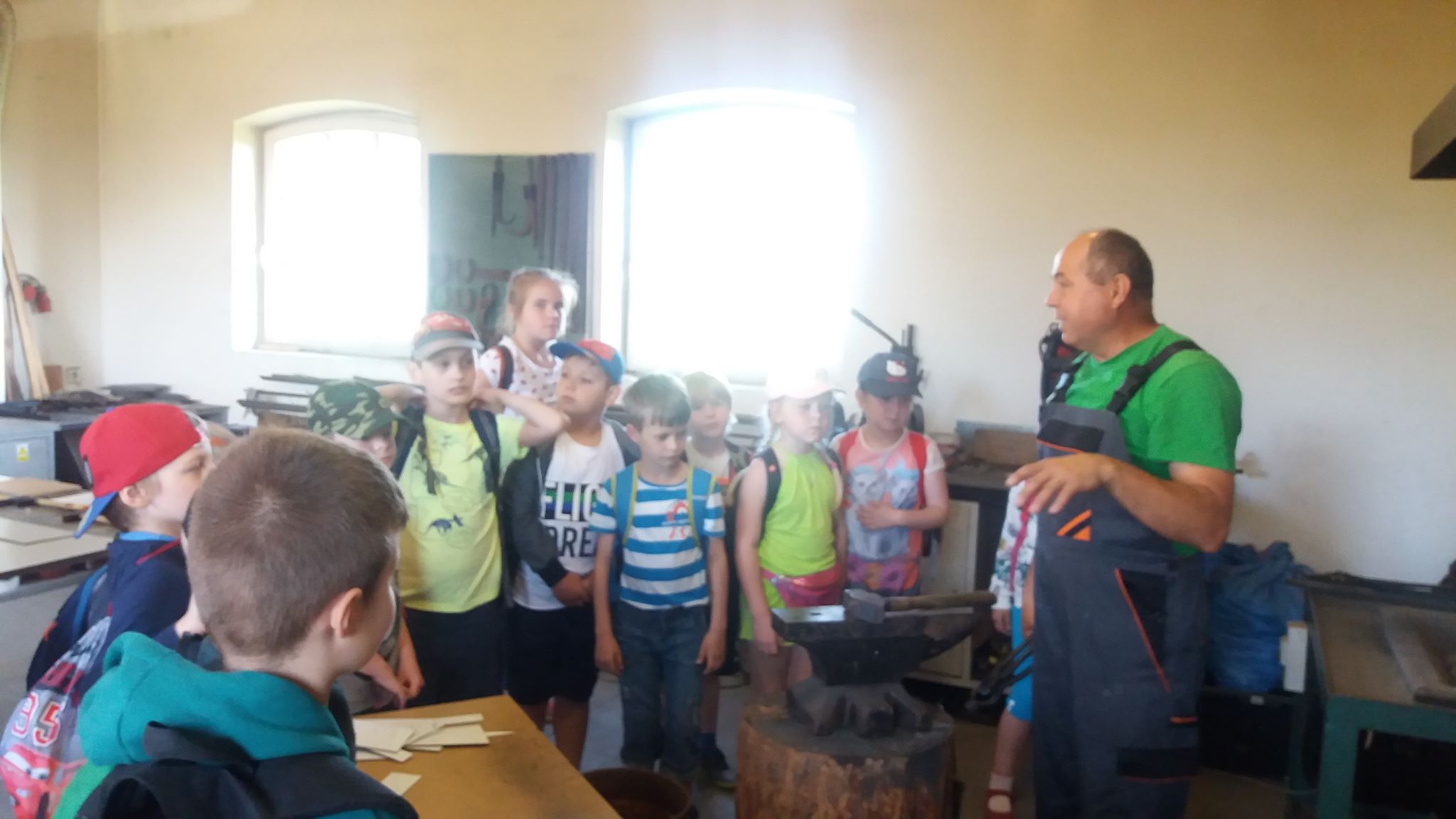 5 czerwca 2019 r. uczniowie klas pierwszych, pod opieką p. Doroty Noworól, p. Urszuli Wolanin i p. Iwony Majchrowskiej, byli na wycieczce w Parku Edukacji i Rozrywki „Kresowa Osada” w Baszni Dolnej. Dzieci uczestniczyły w warsztatach, podczas których uczyły się jak wykonywać ekologiczne kosmetyki oraz wytwarzać pyszne słodycze z czekolady. Zaskoczeniem były prace tworzone za pomocą pędzla i płynnej czekolady. Największą atrakcją okazał się plac zabaw z dmuchańcami. Mieliśmy możliwość zwiedzenia kuźni . Pan kowal bardzo ciekawie opowiadał o swojej pracy. Mimo wysokiej temperatury dzieci z zaciekawieniem obserwowały jego pracę przy palenisku.