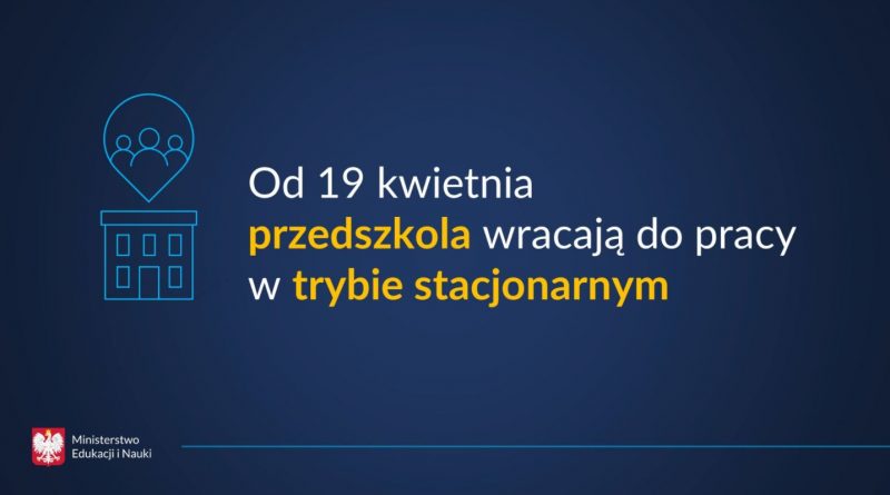 Informujemy, iż od poniedziałku 19 kwietnia dzieci z przedszkoli (tj. z punktu przedszkolnego oraz z oddziałów zerowych) wracają do zajęć w formie stacjonarnej.