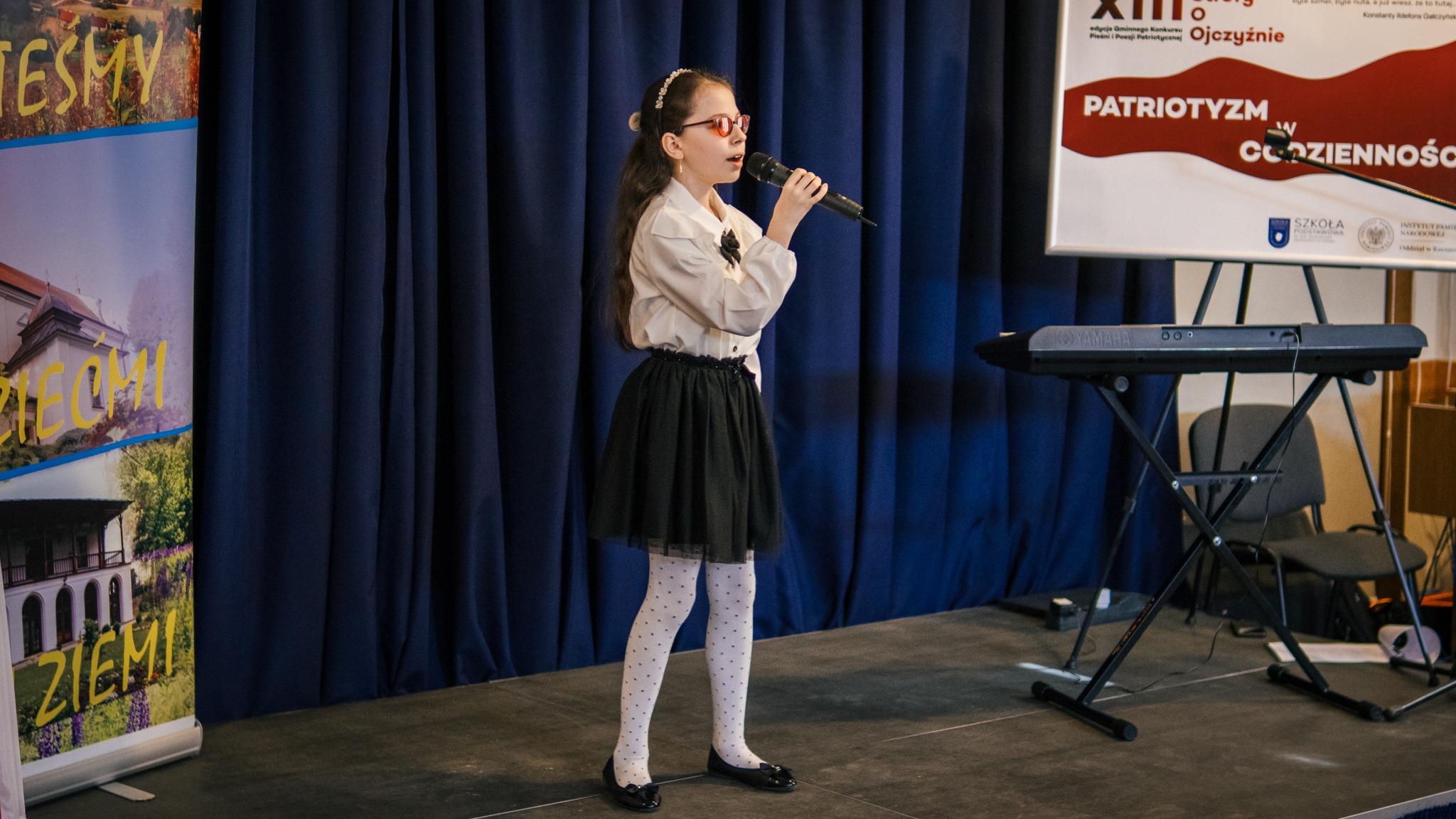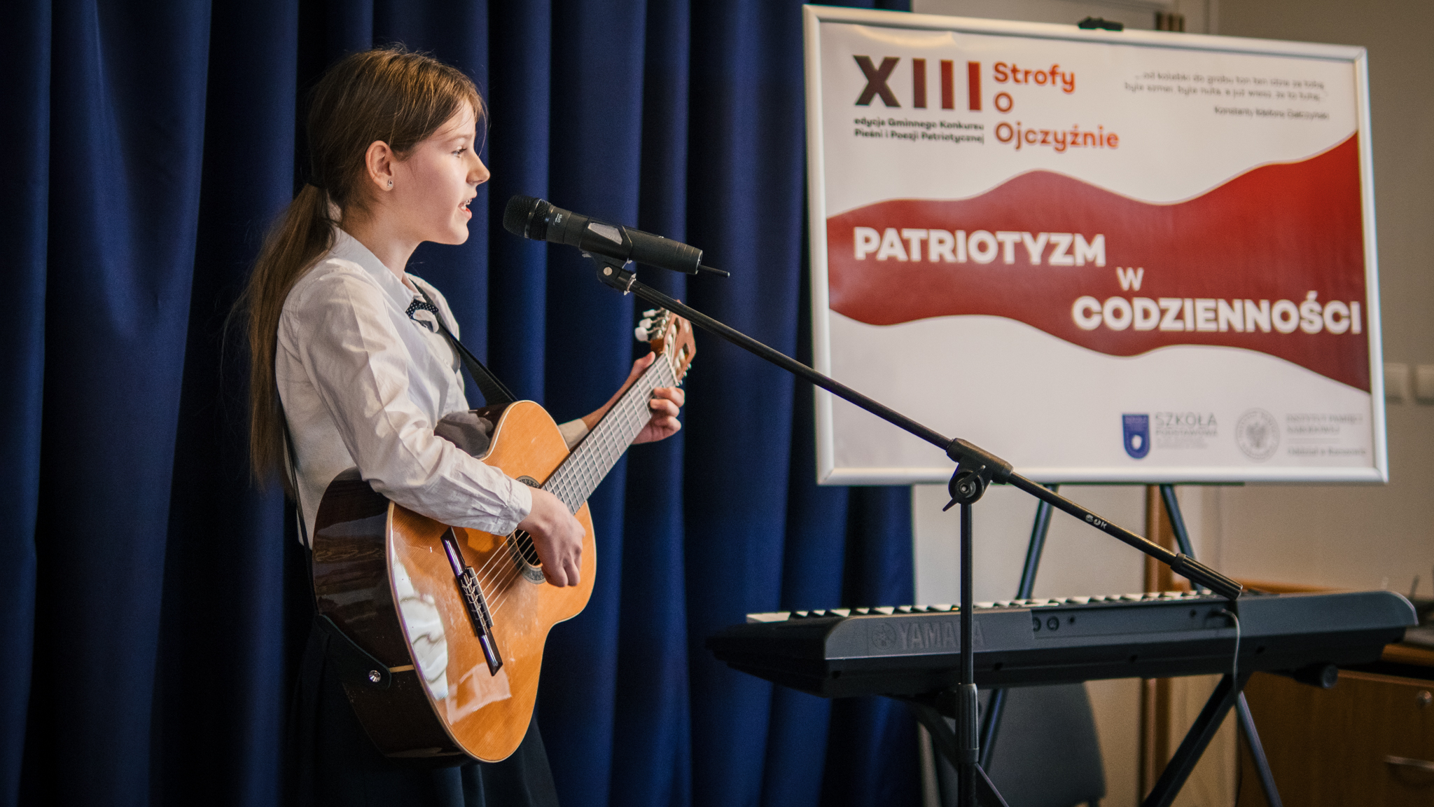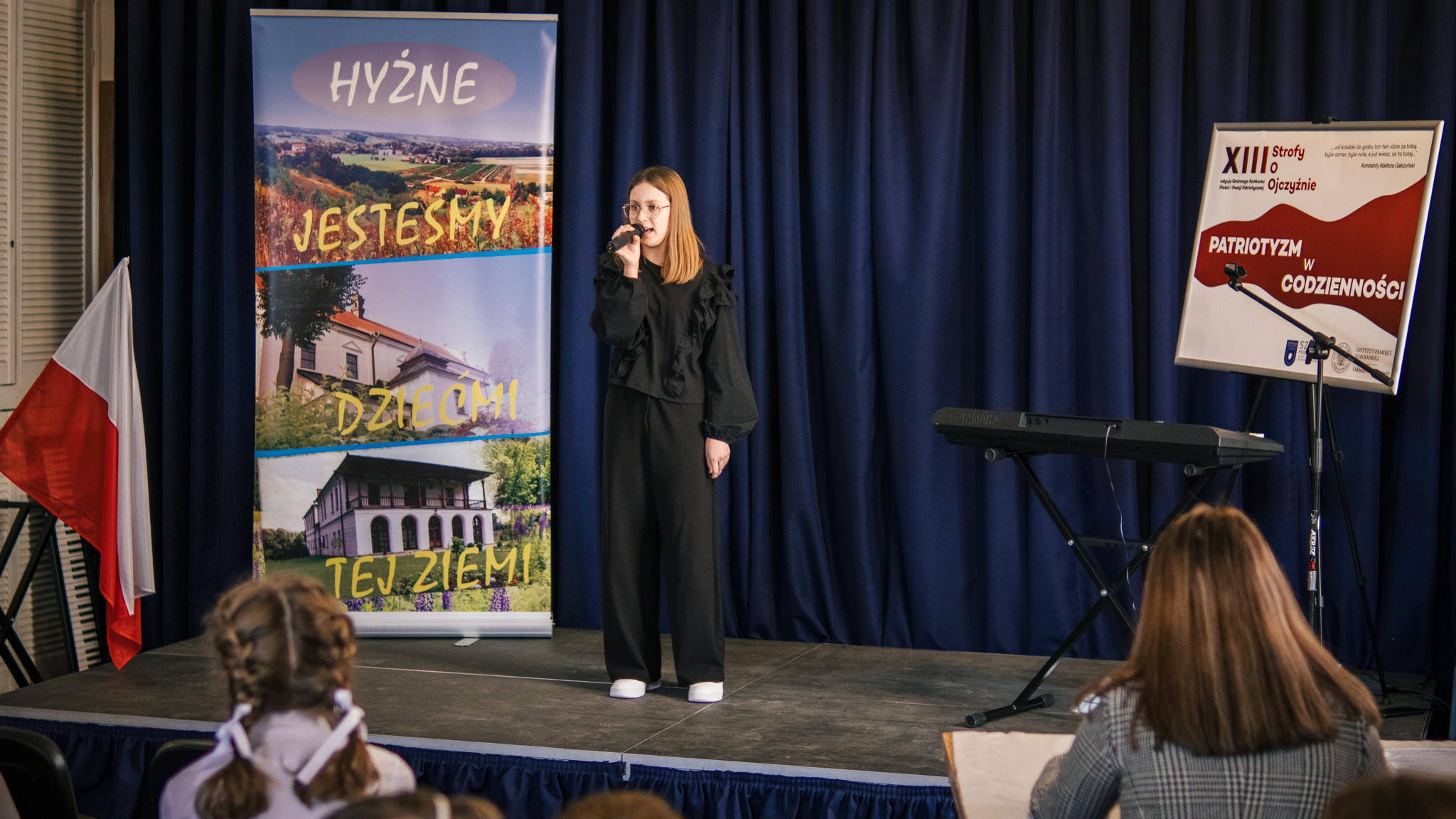 Gminny Konkurs Pieśni i Poezji Patriotycznej „Strofy o Ojczynie” na stałe zagościł w tradycji naszej szkoły. XIII edycja, odbywająca się pod hasłem PATRIOTYZM W CODZIENNOŚCI, zgromadziła 55 uczestników z całej gminy. W wykonaniu uczniów usłyszeliśmy bardzo ciekawie dobrane do tematu wiersze i piosenki – wszystkie prezentacje zasługiwały na uznanie. Od kilku lat nasze patriotyczne Spotkanie obejmuje swym patronatem IPN Oddział w Rzeszowie, wspierając nas atrakcyjnymi nagrodami, zaś już od I edycji Konkursu, dzięki Pracownikom Instytutu, rozwijamy naszą historyczną wiedzę. W tym roku Pan Marcin Bukała w niezwykle interesujący i nieszablonowy sposób przybliżył nam postać Władysława Sikorskiego. Swoją obecnością tradycyjnie już zaszczycili nas p. Wójt Bartłomiej Kuchta oraz p. Sekretarz Dionizy Beda – zawsze jest nam miło, gdy widzimy, że mamy stałe grono sympatyków! Serdecznie dziękujemy też Paniom Jurorkom: Karolinie Dormanow, Klaudii Bukale i Monice Piątek. Ich profesjonalna ocena pozwoliła wyłonić laureatów, choć – jak podkreśliła p. Karolina Dormanow – wszyscy, którzy uczestniczyli w Konkursie, już są zwycięzcami! Szczególnie gratulujemy uczniom, którzy zostali wyróżnieni przez Jury: