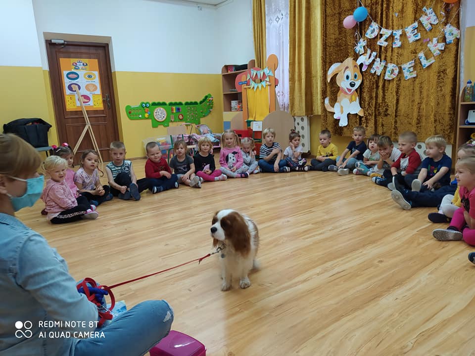 - Dnia 13 października w naszym przedszkolu z okazji Dnia Kundelka zagościli wyjątkowi goście. Była to pani Basia wraz ze swoim pieskiem Riną. Dzieci miały możliwość zapoznania się z przedmiotami służącymi do pielęgnacji psa oraz zasadami jakich trzeba przestrzegać zapoznając się ze zwierzęciem. Przedszkolaki uważnie słuchały uwag dogoterapeutki a poprzez zabawę z psem utrwalały kolory, pokonywały bariery lęku oraz wykonywały ćwiczenia doskonalące utrzymanie równowagi. W nagrodę miały możliwość nakarmić psa oraz zobaczyć kilka sztuczek jakie przygotowała pani Basia wraz ze swoim pupilem.