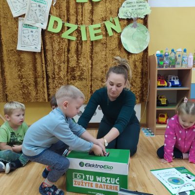- 16 października obchodziliśmy w naszym przedszkolu Dzień Zieleni. Przedszkolaki zapoznały się ze znaczeniem słowa elektrośmieci oraz ich rolą dla środowiska. Najmłodsi tworząc zielone drzewa i otrzymując odznaki „Jestem EKO” oficjalnie stali się uczestnikami projektu: „Moje miasto bez elektrośmieci”. Zarówno w budynku przedszkola jak i szkoły powstały nowe gazetki informacyjne oraz miejsca zbiórki.