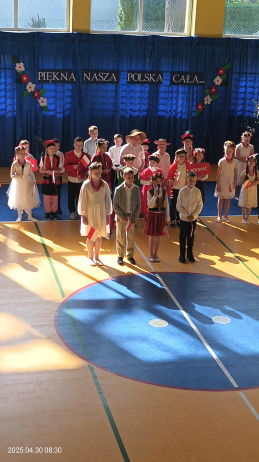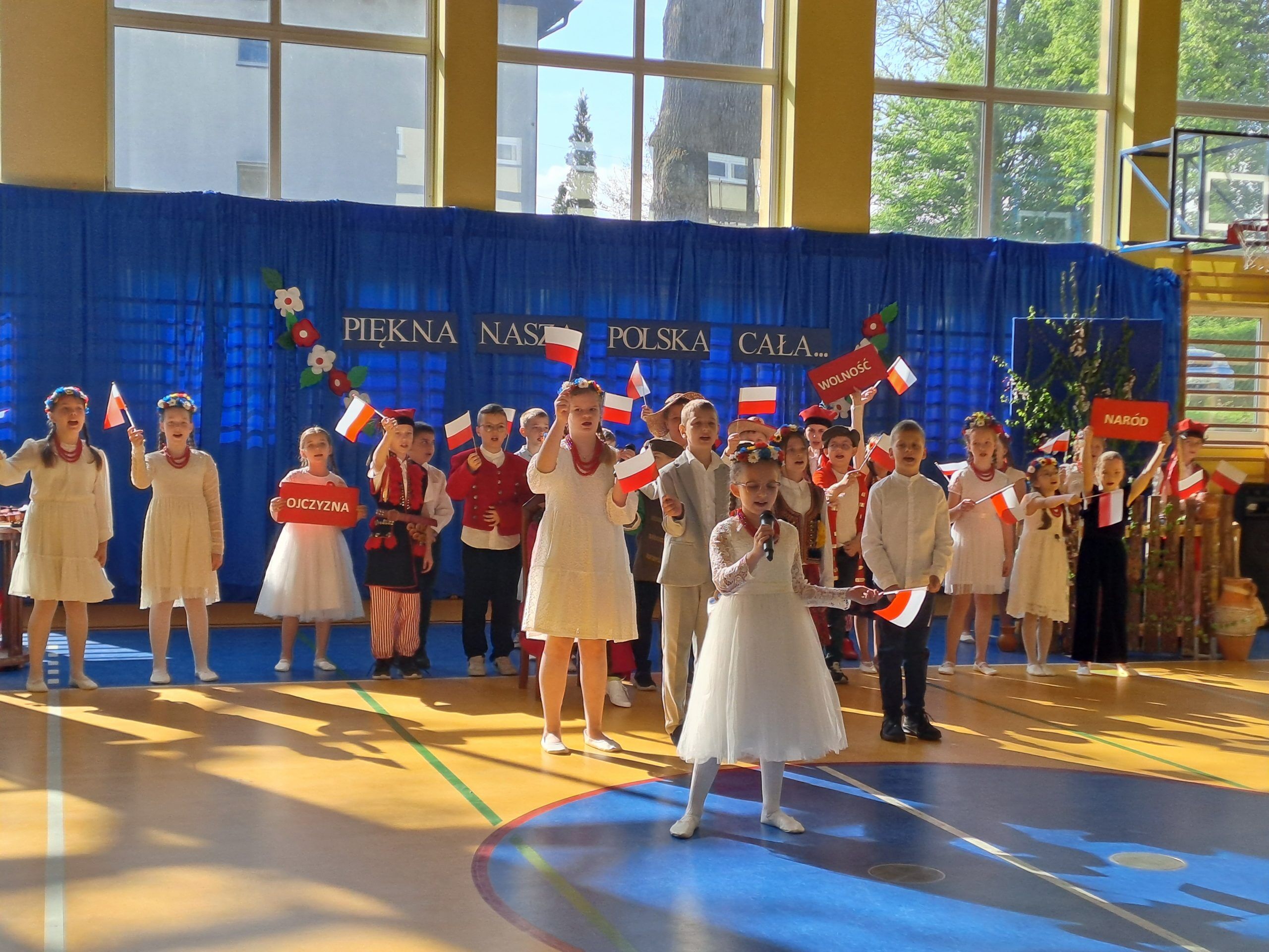 Wczoraj w naszej szkole obchodziliśmy majowe święta. Uczniowie klas 3a i 3b przypomnieli ważne dla Polski wydarzenia historyczne. Następnie w ogólnoszkolnym pochodzie przeszliśmy na hyżneński skwer, gdzie odśpiewaliśmy nasz hymn państwowy.